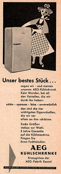 - 1952 erfinden Kasseler AEG-Ingenieure das Einbau-Kühlgerät.