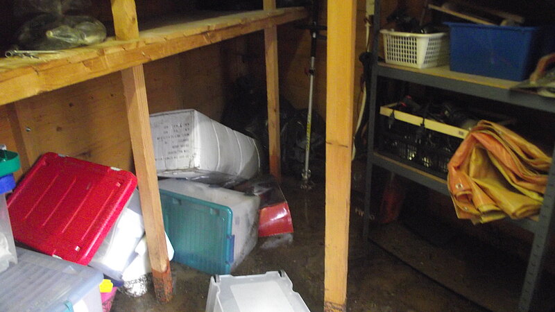 In den nächsten Tagen waren die Aufräumarbeiten dann sehr unangenehm, da sich in den Schuppen eine mehrere Zentimeter starke stinkende Lehmschicht unter die hier abgestellten Geräte und Plastikbehälter geschoben hatte. Wenngleich die Plastikkisten wasserdicht waren, geschah es aber dann doch, dass diese durch die Flut 20 cm angehoben wurden und dann umkippten, um sich dann endlich doch noch mit Wasser zu füllen.