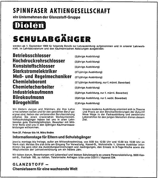 - Ausbildungslehrgänge in vom Glanzstoffkonzern unterhaltenen Schullandheim Freisheim