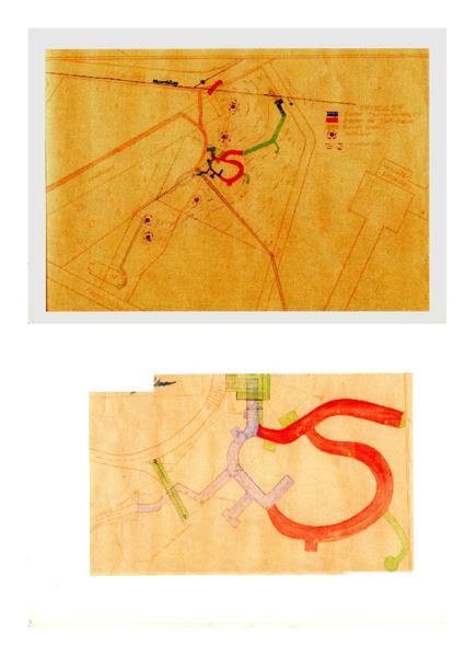 Frau Reckmann gab mir einige sehr schwache Blaupausen, die ich aber dennoch zeige, damit die Lage und die Form des Bunkers bzw. des Tonflözes nicht in Vergessenheit geraten.