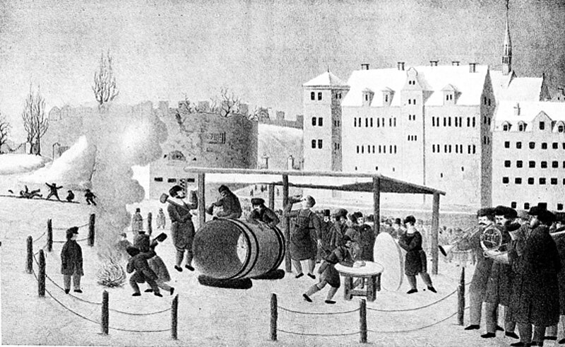 Der Eisgang auf der Fulda wird im Jahr 1836 von einer Kasseler Zeitung, die sich mit dem "Vergnügen in Kassel" befasste, zu den besonderen Vergnügungen gerechnet. Der schlimme Winter 1739/1740, in dem das Eis auf der Fulda erst am 15. März auftaute, führte zu einer Gelegenheit von besonderer Lustbarkeit. Die Hof- und Stadt-Bänderei-Knechte (Küfergesellen), fertigten auf dem Eis der Fulda ein großes Weinfass von ungefähr 22½ hl und führten es am 17. März 1740 gefüllt mit Wein durch die Gassen zum Landgrafenschloss von Wilhelm VIII. von Hessen-Kassel. Es war ein Hochzeitsgeschenk der löblichen Küferzunft an den Erbprinzen Friedrich, den späteren Landgrafen Friedrich II..