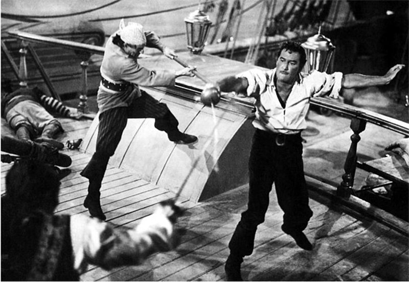 Für all das brauchte man natürlich Geld. So war ich regelmäßig hartnäckig dabei, meine Mutter um Geld anzubetteln, auch für das Kino in Bettenhausen, denn am Sonntag gab es im „Thalia“ einen Farbfilm mit Errol Flynn zu sehen. Es wurde „Freibeuter der Meere“ gezeigt, und diese Piratenfilme standen bei uns genauso hoch im Kurs, wie die Cowboyfilme mit Tom Mix, Buffalo Bill und Hopalong Cassidy. Schon ein paar Mal waren meine Freunde ohne mich ins Kino gegangen, und ich war bisher nur einmal gemeinsam mit meinen Eltern in einer Abendvorstellung gewesen. Aber da gab es nur einen langweiligen Liebesfilm.