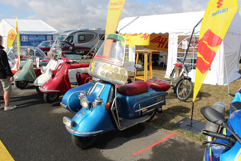 Ausstellung von Heinkel-Tourist Oldtimer am Verkaufsstand in Kassel Calden 2018