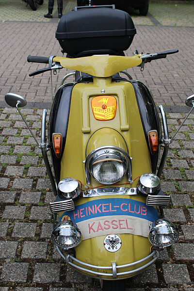 Der Heinkel – Tourist, aufgenommen beim Herkulesbergring 2017 in Kassel. Ein Oldtimer im Zustand von 1964 .