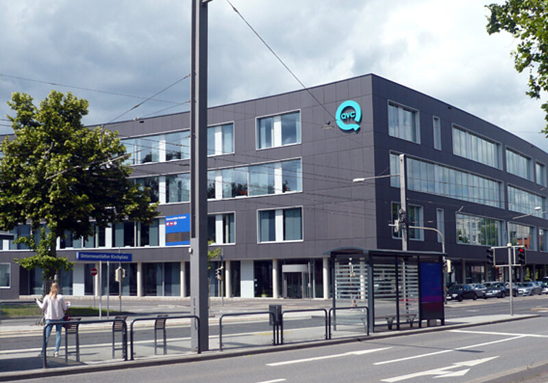 Seit 2005 befindet sich an dem Standort der ehemaligen Anatomie am Unterneustädter Kirchplatz neben der gleichnamigen Haltestelle das QVC-Gebäude .