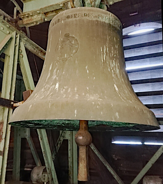 Die große Glocke erhielt den Namen "Rufer-Glocke". Sie hat einen Durchmesser von 116 cm und wiegt 1001 kg, also rund 20 Zentner. Sie trägt auf der Flanke, von dem bekannten Künstler Helmut Uhrig entworfen, eine Abbildung Christi als des Herrn und Weltherrschers. Auf dem Glockenhals ist das Wort des Propheten Jeremia eingegraben: "O Land, Land, Land, höre des Herrn Wort! "