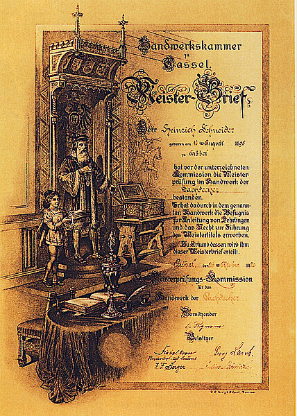 Die Schneider Dacheindeckungen GmbH ist ein Familienunternehmen, das seit mehr als 150 Jahren das Bild unserer Region prägt. Begonnen hat diese Geschichte eines Handwerksbetriebes im Oktober 1870. Da machte sich August Schneider in der Artilleriestraße 23 in Kassel als Dachdecker selbständig. Der Betrieb wuchs und so zog August Schneider 1906, im Jahr der Eingemeindung Bettenhausens, mit seinem Betrieb in das neu erbaute Haus mit Werkstatt in die Osterholzstr. 23 um. Nach der Weiterentwicklung des Betriebes und Umzug nach Kassel Waldau besteht die Firma 2022 in der sechsten Generation.