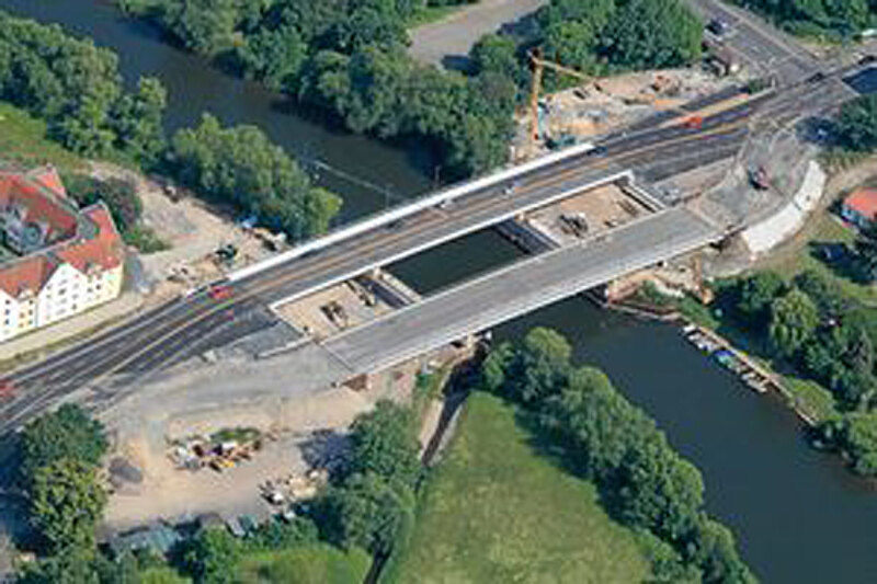 Nach dreijähriger Bauzeit wurde diese am 28. Oktober 2011 dem Verkehr übergeben. Um eine längere Sperrung der wichtigen Verbindung zu vermeiden, entschloss man sich, neben der bestehenden erst die eine Brückenhälfte zu bauen, danach die alte Brücke abzureißen und nach Freigabe des ersten Teiles, den zweiten Brückenteil zu bauen.