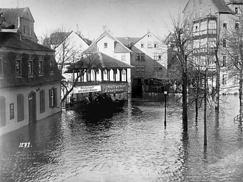 Aber auch in der Gastwirtschaft beim Wirt Zahn (Bierbrauer und Küfermeister), aus dieser Familie ging die Baufirma August Zahn KG. hervor, spielte die Musik. Hier tagte die Stammtischgesellschaft "Dörfchen", aus den ihr zugehörigen Theatermusikern formiert sich eine Kapelle, deren Bierabende "Manchester-Abende" stadtberühmt waren. Mit ein paar Schritten um den Holzmarkt und den Unterneustädter Kirchplatz war man in der nächsten Wirtschaft und das waren mindestens ein Dutzend. Beim Sumser, so wurde der Inhaber des "Weißen Schwan" genannt, tagten die Wasserwehrmitglieder "Schwimmi" August Gerhardt, Metzgermeister Börner, Inspekteur Steinbach, Kohlen-Dülfer und die Gärtner Gerhardt und Henner Röse. Nach jedem Hochwassereinsatz wurde dann mit einem Fass Bier die "Wasserkirmes" nochmals begossen.