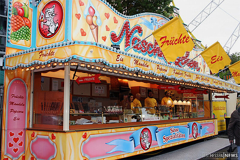 Bevor Alfred Fiege mit seinem Eiswagen auf Volksfeste und Märkte zog, betrieb er in 1950er Jahren drei Eiscgeschäfte in Kassel. Neben dem am Leipziger Platz eines beim Hauptfriedhof und ein weiteres in der Frankfurter Straße Ecke Landaustraße. Noch immer ist Alfred Fliege aus Fuldatal mit seinem Naschkätzchen-Eis unterwegs. Das obenstehende Foto mit dem bunten Wagen entstand 2016 auf dem Lullusfest in Bad Hersfeld.