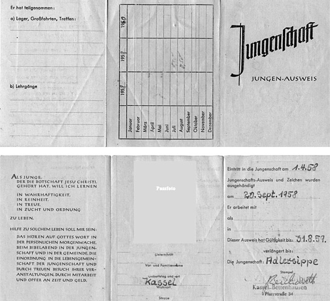 Der 1919 gegründete CVJM Wartburg e.V. ist in Bettenhausen traditionell sehr eng mit der Evangelischen Kirche verbunden. Und so war es guter Brauch, dass die Jungen nach ihrer Konfirmation Mitglied in der Jungenschaft wurden. Die Jungenschafts-Mitglieder des CVJM Wartburg waren in drei Gruppen, sogenannte Sippen, gegliedert. Dies waren: die „Tigersippe“ in der Eichwaldsiedlung, die „Welfensippe“ im Forstfeld und die „Adlersippe“ in Bettenhausen. Am 1. April 1958 wurde ich Mitglied in der „Adlersippe“ und bin bis zum heutigen Tag Mitglied im CVJM Wartburg geblieben.