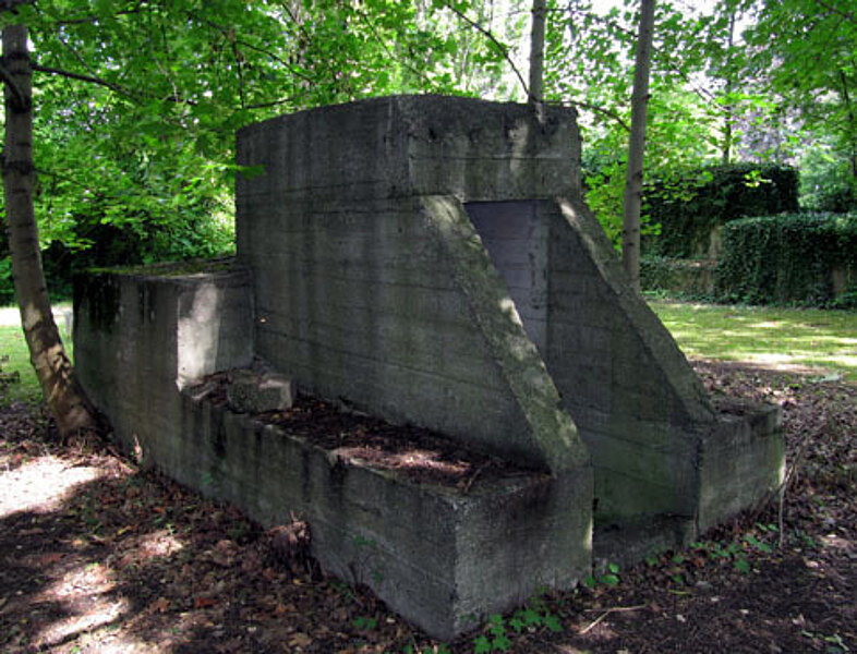 Im Wilden Garten Wohnstraße 11 stand kurz vor der Mauer eine sehr große Linde. Während eines Jahres in den Sommerferien wurde mit geklauten Bohlen, Brettern usw. ein Baumhaus gebaut. Es war recht stattlich und eine schöne Rückzugsstätte. Man konnte von dort auch gut die "Riemänner" aus der Lilienthalstraße, die mit der Wohnstraße "Krieg" führten, sehen, Jungen aus der Nachbarschaft, unsere erklärten "Feinde". Dieses Kapitel spielte sich nur hinter der Mauer und hinter den Gärten ab. Von diesem Baum fiel meine Schwester Erika später und brach sich den Halswirbel, weshalb sie lange im Krankenhaus liegen musste. Als der Herbst/Winter kam und das Laub abfiel, war das Baumhaus gut zu sehen und unser Versteck wurde entfernt.