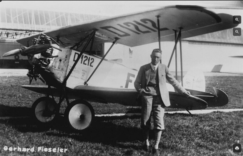 Ein anderer Pionier der Deutschen Luftfahrt war Gerhard Fieseler (*15.4.1896, +01.9.1987). Der gebürtige Rheinländer Fieseler war ein berühmter Kunstflieger und Flugzeugkonstrukteur sowie Gründer und Inhaber der Fieseler Werke in Kassel.