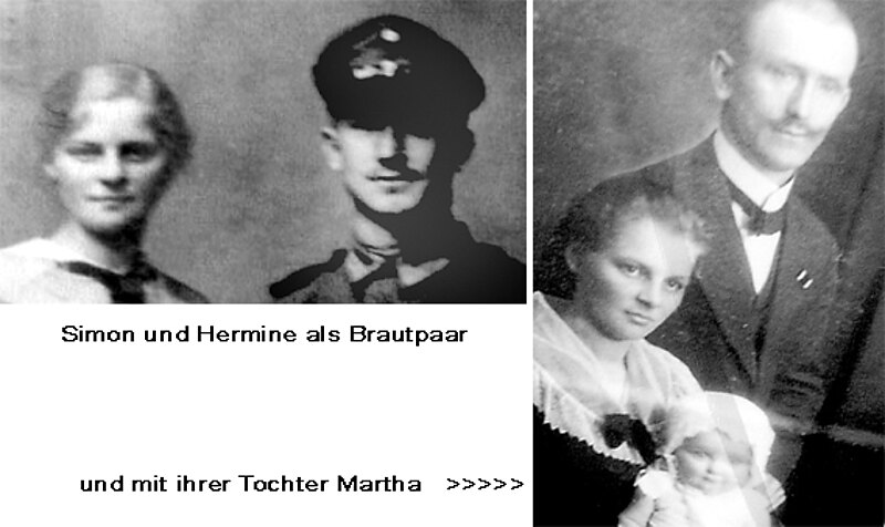 Ein Bruder meiner Großmutter, August W., lernte in einer Reichswehreinheit während des Ersten Weltkrieges Heinrich St. und Simon K. kennen. Als August W. seinen Kameraden Familienfotos zeigte, verliebte sich Simon K. spontan in die hübsche Hermine W.