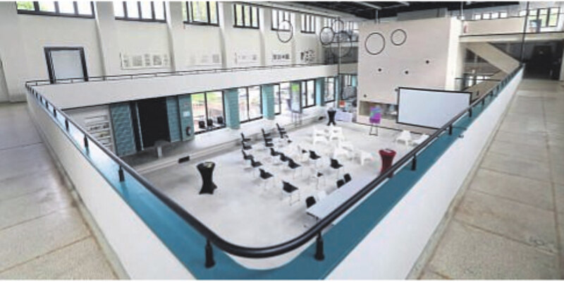 2021 das Projekt von Unternehmer G. Fels ist gescheitert, die Kasseler Architekten Marc Köhler, Keivan Karampour und Thomas Meyer (KM Architekten) haben das Objekt erworben, die es nun nach der aufwendigen Sanierung der documenta 15 zur Verfügung stellen. Ein Blick in das Hallenbad Ost zeigt, das nach der Sanierung und Umgestaltung moderne Büros und Arztpraxen eingezogen sind. Die ehemalige Schwimmhalle mit Galerie steht auch für Konferenzen, Seminare, Kulturevents und private Feiern zur Verfügung.
