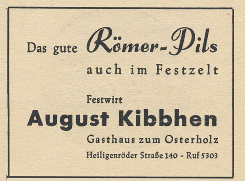Bei den Eichwaldfesten der 50er Jahre war August Kibbhen der Festwirt, der das beliebte Römer Pils ausschänkte.