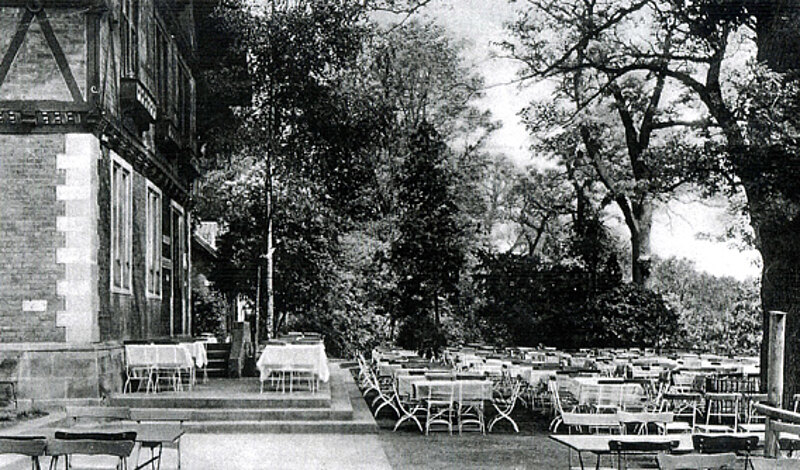 Auf der Eichwaldstraße ging es mit Kinderwagen und einem Bollerwagen, damit nicht alles getragen werden musste, in Richtung Eichwald. Unterhalb des jüdischen Friedhofs, an den Lossewiesen entlang und zum Schluss unter dem Laubdach einer hundertjährigen Eichenallee führte der Weg zum Eichwaldrestaurant. Nach einer knappen Stunde dort angekommen, galt es zuerst auf der großen Terrasse unter der alten Eiche einen Tisch zu finden.