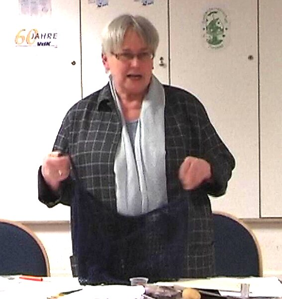 Hildegard Spitzer ist Forstfelder Urgestein, sie wuchs im Wahlebachweg auf, wo sie noch heute lebt. Sie ist die Tochter des verstorbenen Landtagsabgeordneten Wilhelm Koch. Beim Erzählabend brachte sie ein "Netz voller Erinnerungen" mit, lauter Gegenstände aus der Geschichte Forstfelds, die sie dann kommentiere.