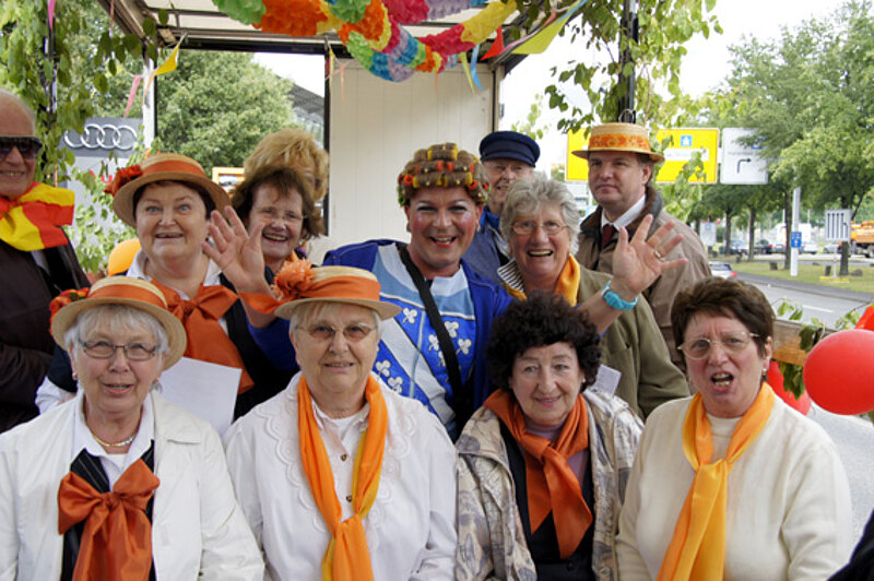 Einheitl. Krawatten der Sänger, gleichfarbige Schals die Damen, von den Sängerinnen selbst hergestellt.
