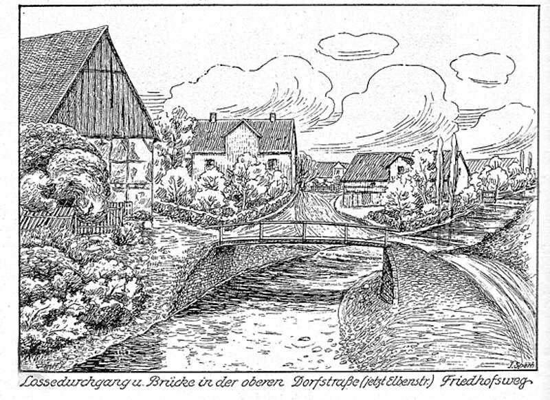 Für die von der Kirche kommenden Leichenzüge, auf dem Weg zum Friedhof im Eichwald, gab es neben der Furt ein einfaches Holzbrückchen mit einseitigem Geländer, damit man trockenen Fußes den Fluss queren konnte. Außerdem gab es für eine Reihe von Anwesen massive Stege mit einem eisernen Handlauf über den parallel zur Losse verlaufenden Mühlgraben.