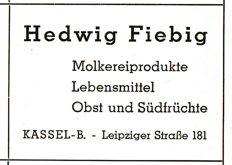 Ihre Tochter Hedi übernahm 100 Meter weiter stadtauswärts das von Minna Holzapfel gegründete Lebensmittelgeschäft in der Leipziger Straße 181 Ecke Jakobsgasse. Zusätzlich zu dem Verkauf von Molkereiprodukten hat sie dort auch weiterhin mit Obst und Gemüse gehandelt. Das neue Geschäft hatte zwar nur ein wenige Quadratmeter mehr an Verkaufsfläche, war jedoch mit einer Kühltheke ausgestattet, verfügte über ein kleines Lager und einen Vorratskeller. Hier war Hedi Fiebig Einzelhändlerin mit Leib und Seele und gab sich täglich Mühe ihre Bettenhäuser Kundschaft zufrieden zu stellen.
