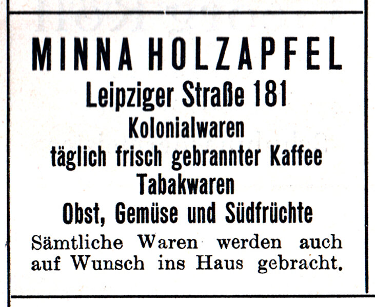 Um näher an ihrem Laden zu wohnen, zog sie mit ihrer Familie von der Eichwaldstraße 78 in einen Neubau in der Leipziger Straße 187.