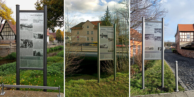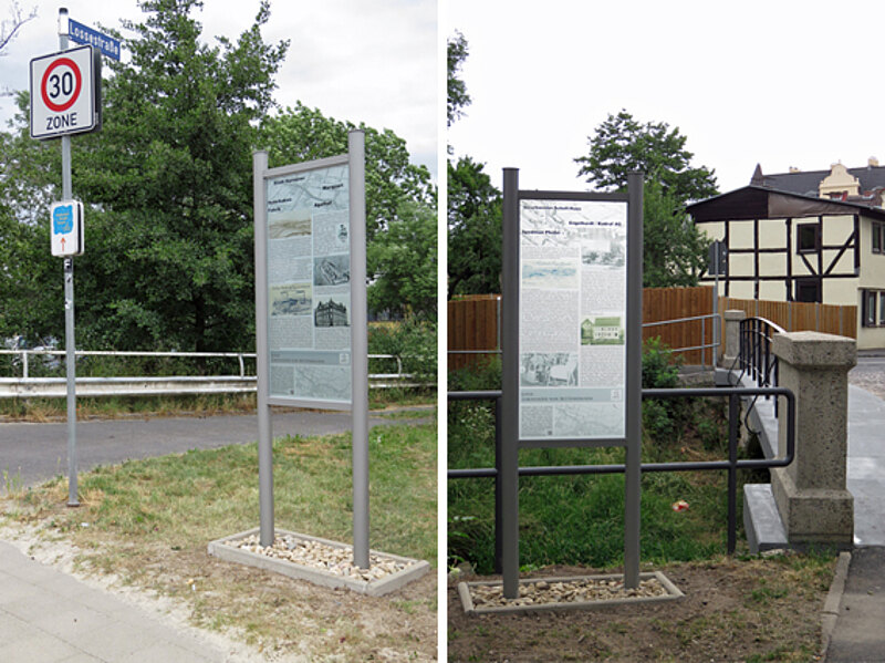 In 2013 hat Herr Klobuczynski vom ibf im Auftrag des Geschichtskreises die drei ersten Infotafeln für den Mühlenwanderweg konzipiert und die Fa. Zinke mit der Ausführung und dem Aufstellen der Tafeln beauftragt.