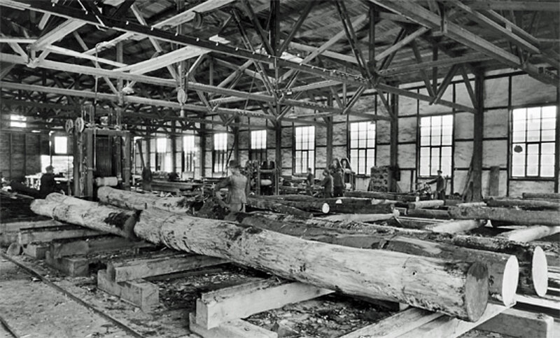 Ab 1931 arbeiteten die Söhne Georg und Eduard wieder im Holzhandel des Vaters. Mit ihm zusammen bauten sie ein Sägewerk auf, zunächst mit nur einem Horizontalgatter, angetrieben mit einem Dieselmotor. 1934 kam ein dampfgetriebenes Vollgatter hinzu.