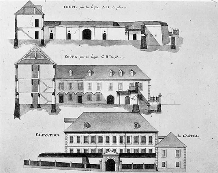 Die Zeichnung zeigt den Entwurf des hessischen Artillerieleutnant F.W. Selig, der als Erbauer des Kastells gilt.