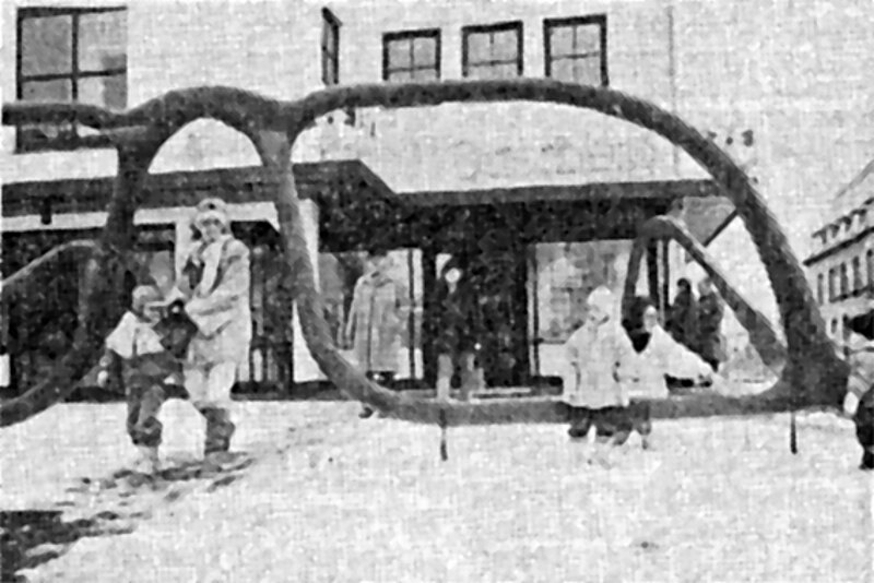 Das erste Geschäft des Optiker Osterberg in der Leipziger Straße 153, Auf der Treppe steht Frau A. Osterberg.