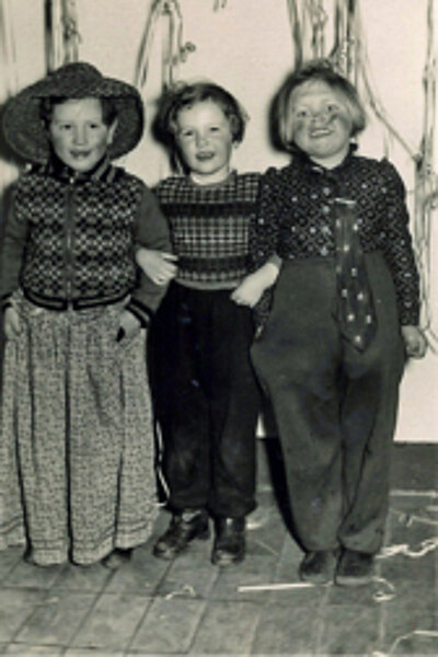 Meine erste Lehrerin war Frau Schulze-Heise und der Rektor war Herr Dietrich, an Lehrer Voltz und Lehrer Sinnig kann ich mich auch noch erinnern. 1954 feierten wir Fasching bei Theumer.