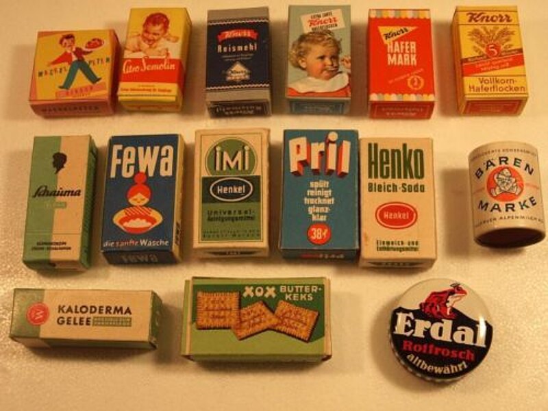 Meine Mutter arbeitete in einer Bäckerei, die neben einer Schlachterei lag. Es gab also Brötchen mit Leberwurst - sowohl bei der Wurstverkäuferin, als auch bei uns. Organisieren war damals das Zauberwort, so wurde für mich eine Puppenstube organisiert, die mit etwas Tapete zu einem Kaufmannsladen umgestaltet worden war. Es gab sogar schon wieder kleine Verpackungen – Henko, Sil, Imi, den bekannten Lindes-Kaffee mit den blauen Punkten, aus Blech Waage und Registrierkasse und sogar Spielzeuggeld und einen kleinen Kassenblock. Meine arme Mutter, immer wieder musste sie bei mir einkaufen. Mein Vater, Nichtraucher, hatte sich aus dem Lager, in dem er interniert war, für Zigaretten Kasperle-Figuren schnitzen lassen und und von sich ein Gipsportrait, was dann statt des Asparagus auf ein Podest kam. Aber nicht für lange Zeit:“ Mutti, Mutti,“ rief ich, „ich habe den Vati kaputt gemacht“.
