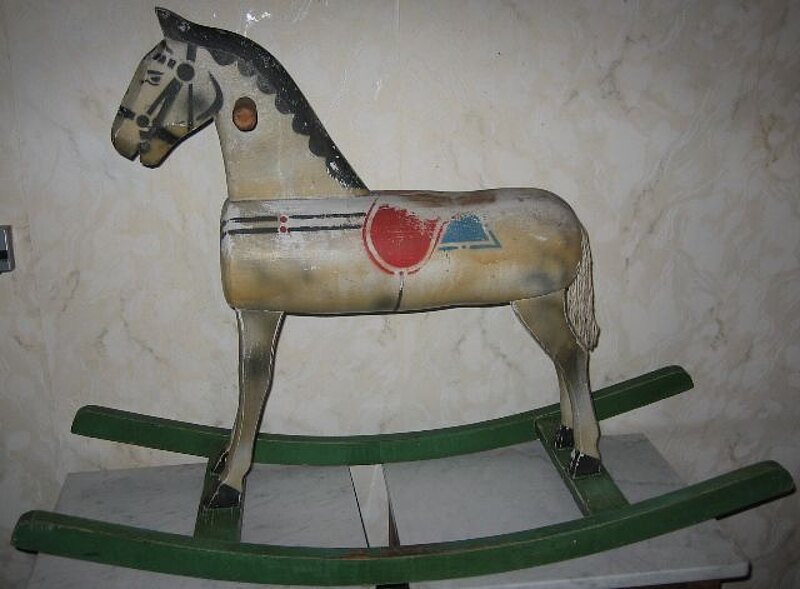 Zu meiner Freude hatte auch mein Vater als Soldat Weihnachtsurlaub und so ritten wir auf den zwei Schaukelpferden um die Wette, bis das Pferd meines Vaters stolperte und sich ein Bein brach, entweder war das Holz zu brüchig oder aber mein Vater war einfach nur zu schwer. Gut also, dass wir zwei Pferde hatten. Leider hatte es das schönere, einen Apfelschimmel, getroffen.