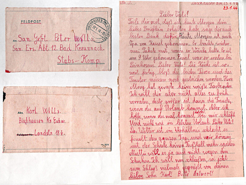 Von dem nachfolgenden fürchterlichen Luftangriff am 22. Oktober 1943 auf Kassel haben wir außer einem glutroten Himmel, Gott sei Dank, nichts mitbekommen (Entfernung Luftlinie ca. 40 km). Wir haben dann hier das Kriegsende 1945 erlebt, aber warten Heute noch auf unseren lieben Vati welcher als „Vermisst“ gilt.