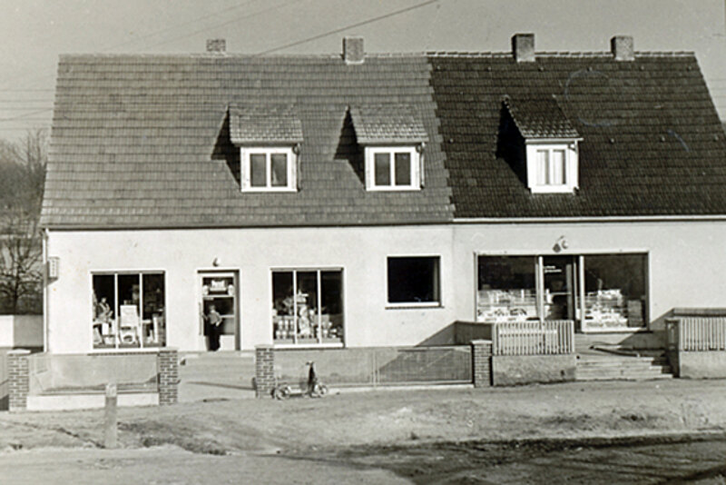 Lebensmittelladen Nase neben Wohnhaus 1949