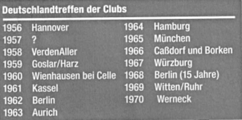 1966 gab es Treffen in Caßdorf und Borken Treffen. Heimische Lotsendienste erwarteten die Teilnehmer vor Caßdorf und leiteten sie zum Treffpunkt vor dem Bürgerhaus in Borken. Der Ausflug führte zu einem verlassenem Bauernhof. Hier brachte ein Mitglied, Metzger von Beruf, eine Sau zum Grillen mit.