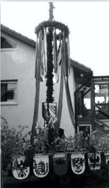 Inzwischen hatte sich die Gemeinschaft eine Obstpresse angeschaft, die intensiv genutzt wurde, vor allem auch bei öffentlichen Veranstaltungen zeigte man der Bevölkerung, was man mit den Erzeugnissen aus den Siedlergärten alles anfangen kann, so auf dem Bettenhäuser Dorfplatz, dem Königsplatz und in der Turnhalle der Schule Am Lindenberg. Gemeinsam mit den Siedlergemeinschaften rund um den Lindenberg führte man im Bürgerhaus Lohfelden gemeinsame Karnevalsveranstaltungen mit über 400 Besuchern durch. Musikeinlagen der Lindenberger Kellergeister brachten dann "Siedlerstimmung". Immer wieder nahm die Gemeinschaft an Landes- und Bundeswettbewerben teil und erhielt viele Preise. Gemeinsam unternahm man zahlreiche Busfahrten, aber auch Schiffsfahrten auf der Fulda, z. T. mit zwei Schiffen. Immer wieder wurde im Garten der Familie Kraus ein großes Zelte aufgestgellt und große Feste gefeiert. Hannelore Kraus leitete die Frauengrupp von 1983 bis 1998 überaus erfolgreich. Im Nov. 1989 geschah Unfassbares, die Grenzen zur DDR wurden geöffnet, da waren die Lindenberger Frauen natürlich zur Stelle. Es wurden an der Leipziger Straße Waffeln und heiße Getränke angeboten. Heiße Getränke gab es auch alljährlich zu unserem Glühweintreffen, bei denen sich Siedler und Nachbarn zum gemütlichen Gedankenaustausch trafen. Im Mai 1996 feierten wir unter dem höchstgelegenen Maibaum (Bild rechts) auf dem Grundstück der Fam. Martin ein Fest.