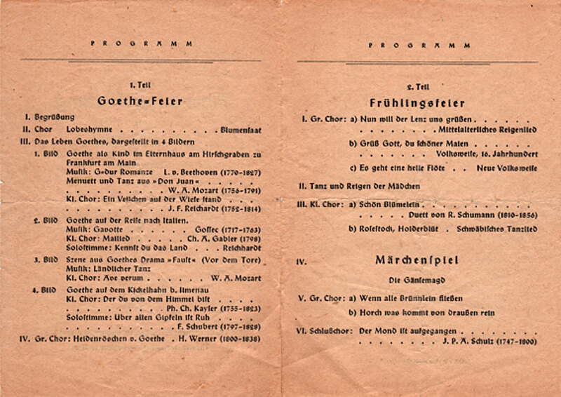 - Am 18. und 20.05.1949 Abendveranstaltung der Bürgerschule 26 "Das Leben Goethes dargestellt in 4 Bildern" und musikalische Frühlingsfeier