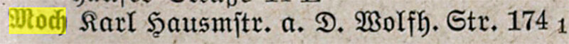 Der letzte Eintrag über Karl Moch steht in dem Adressbuch von 1927. Der Eintrag lautet: Moch, Karl Hausmeister a. D. Wolfhager Straße 174, 1. Stock.