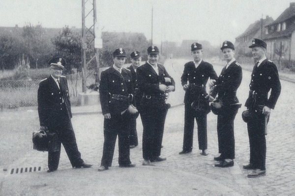 Er begann, verantwortungsbewusste Kameraden, aus unserem Stadtteil, die in ehemaligen Werkfeuerwehren tätig waren für einen Neuaufbau des Feuerlöschwesens auf freiwilliger Basis zu gewinnen (im dritten Reich gab es keine Freiwilligen Feuerwehren weil sie aufgrund einer Reichsverfügung aufgelöst und zur Feuerlöschpolizei umgewandelt wurden). Es stellten sich, soweit uns bekannt, folgende Kameraden zur Verfügung: