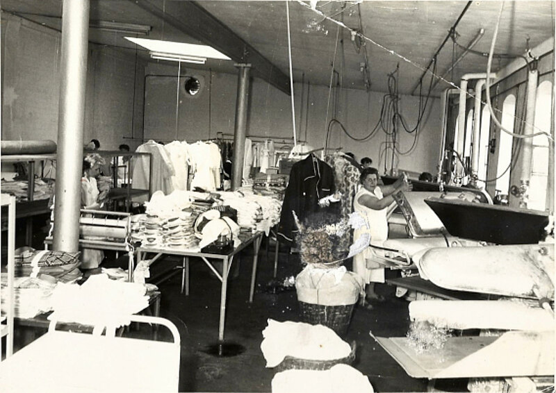 Schöne Wäsche ist der Stolz einer jeden Hausfrau. Es war früher ein mühsam erkaufter Stolz. Die Wäsche wurde unter viel Kraft und Mühe in der Hauswaschküche gekocht, von Hand gewaschen, ausgewrungen und zum Trocknen auf die Leine gehangen oder die Bleiche gebracht. Wer sich daher alle Mühe und Plage ersparen wollte, überließ die große oder kleine, die bunte oder weiße Wäsche ganz der Wäscherei bis zur Schrankfertigkeit. Zur Zeit der Gründung der Wäscherei Albrecht 1885 als Färberei und chemische Reinigung leisteten sich diese Dienstleistung nur die privilegierten reichen Haushalte und Gewerbebetriebe. 1890 kamen Wäscherei und Plätterei hinzu.