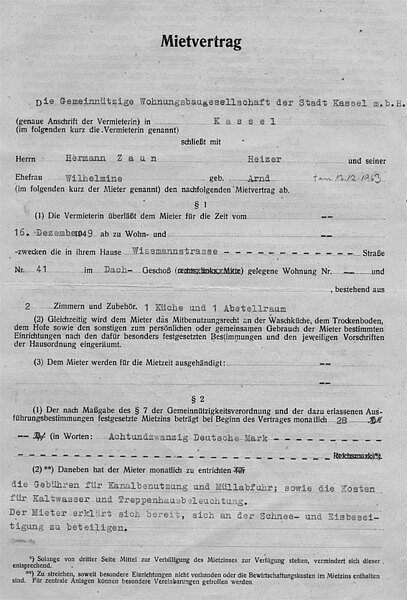 "Als dann Ende 1945 noch der Bruder meiner Mutter aus der Kriegsgefangenschaft kam, wurde die Wohnung für 3 Familien zu klein und mit Glück erhielten wir im Hause Wissmannstraße 38 eine 3 Zimmerwohnung ebenfalls über 2 Etagen, so dass eine gemeinsame Küche und für 3 Familien jeweils 1 Zimmer und eine Toilette in der Wohnung, zur Verfügung stand. Aufgrund der beengten Wohnungssituation erhielt mein Onkel , der als Polizeibeamter seinen Dienst versah, dann Ende der 50er Jahre in dem Neubaugebiet der „GEWOBAG“ später „NEUE HEIMAT GmbH“ in der Meißnerstraße im Stadtteil Helleböhn, eine Neubauwohnung.