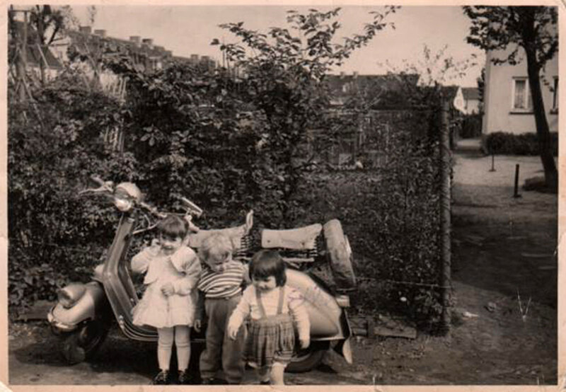 Im Jahre 1949 heiratete meine Mutter wieder und wir erhielten eine eigene Mansardenwohnung im Haus Wissmannstraße 41. Wohnungen waren in dieser Zeit Mangelware. Das obere Foto zeigt Kinder der städtischen Siedlung in 1950 v. l. Wilfried Strube, Karl-Heinz Nockert †, Arthur B. Buchmann, Roland Heiderich †, Walter Buchmann †, vor dem Haus Wissmannstraße 39.