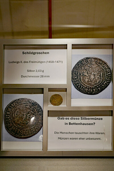 Mit Hilfe von thematisch geordneten Texten auf Tafeln, lebensgroßen Schaufensterpuppen in zeittypischer Kleidung und Alltagsgegenständen aus jener Zeit wurde dem Besucher experimentell ein Einblick in die Ortsgeschichte von vor 600 Jahren gewährt. Eine echte im Mittelalter geprägte Silbermünze demonstrierte, dass auch schon Geld im Umlauf war, was aber die unterdrückte Landbevölkerung wahrscheinlich nie in den Händen hielt.