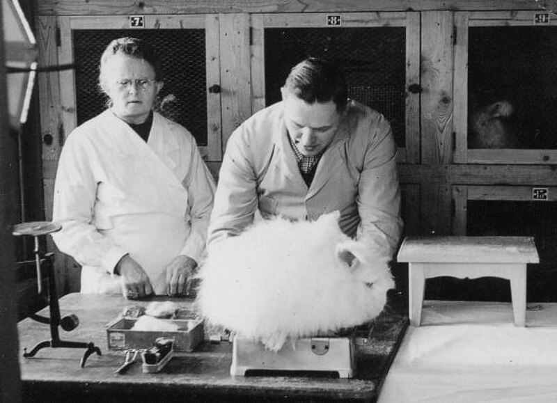 Dieses Bild in der Chronik der Siedlergemeinschaft Forstfeld (Angorakaninchenzucht der Familie Schößler) inspirierte die Künstlerin Bohrmann-Roth-zu der Hasenskulptur auf dem Forstfelder Stadtplatz.