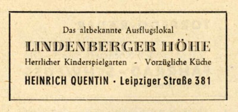 Die Geschichten über die vergangenen Zeiten bekam auch Dieter Bott von seinem Großvater Feuerschutzpolizist Ludwig Bott, der im zweiten Stock über der Gaststätte wohnte, erzählt. Er selbst, 1935 in Hannover geboren, zog nach dem Ende des Zweiten Weltkriegs mit seinen Eltern und seiner Schwester zu den Großeltern in die Wohnung in der Leipziger Straße 381. Zwischen 1946 und 1960 verbrachte er seine Kindheit und Jugend in diesem Haus. In diesen schweren Zeiten der Wohnungsnot wohnten drei Familien in einer Wohnung. Nach dem Krieg wechselt auch der Wirt. Heinrich Quentin betrieb nun das altbekannte Ausflugslokal mit vorzüglicher Küche.